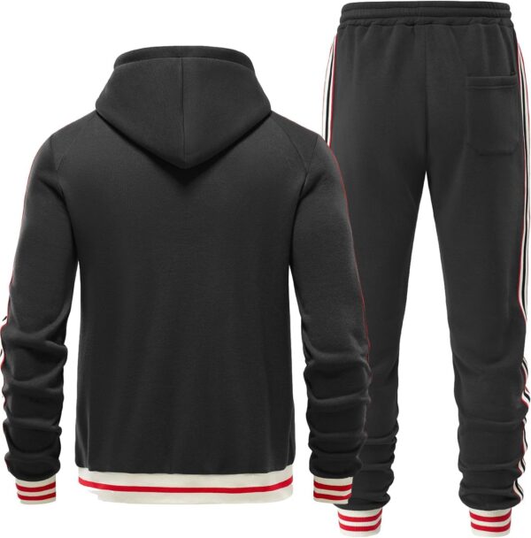 • Lightweight men’s tracksuits set made of skin friendly polyester fabric with inner fleece lining, soft and cozy. It provides an ideal balance of stretch and breathability to keep you warm and stay dry before, during and after training in spring, fall and winter.